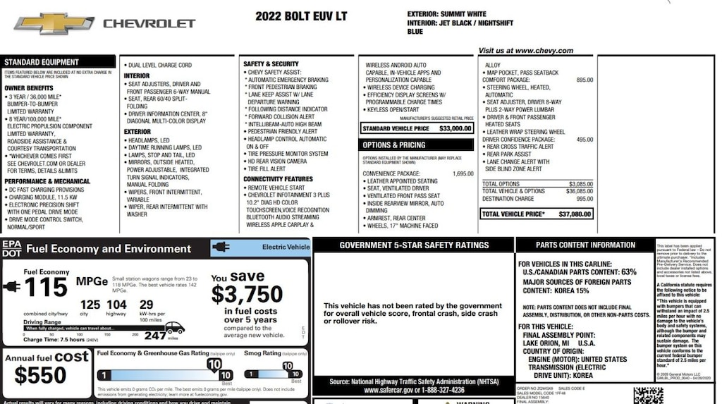 This is the second Bolt having own a 2017 Bolt EV. I traded it for the new EUV after driving it for 5 years 55K miles. The new dash with the new infotainment system is great. I think the price is a good value compared to other EV's with a 250 mile range. I like the Super Cruse although i think that it still needs some refinements. Current battery problem are not that much of a concern but disappointing. GM will need to do something to reward early buyers of this car. - 4.0