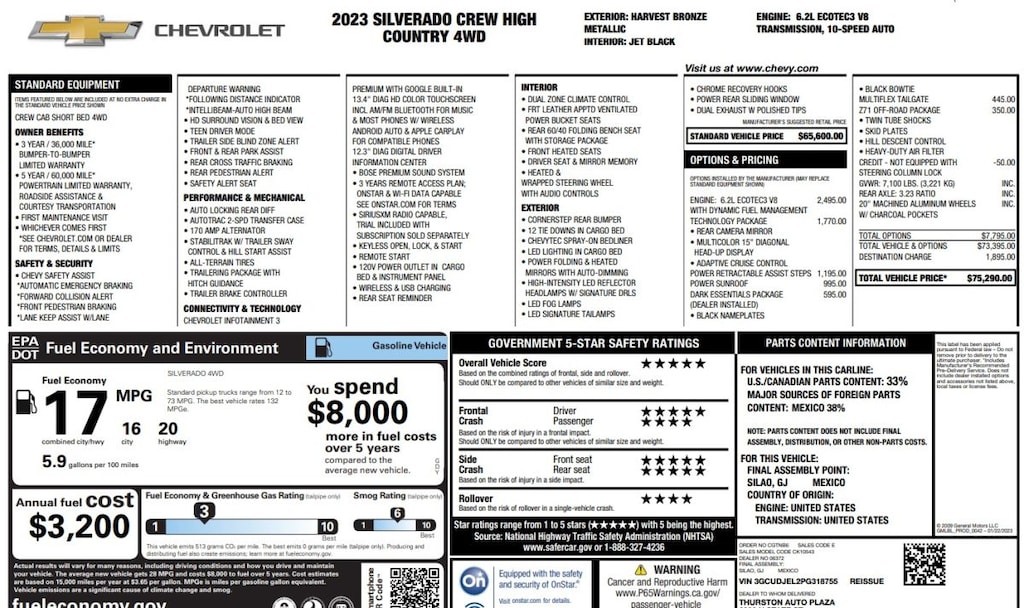 2023 Chevrolet Silverado 1500 High Country 4x4 Truck Crew Cab V8 DI Dyn Fuel Mgmt