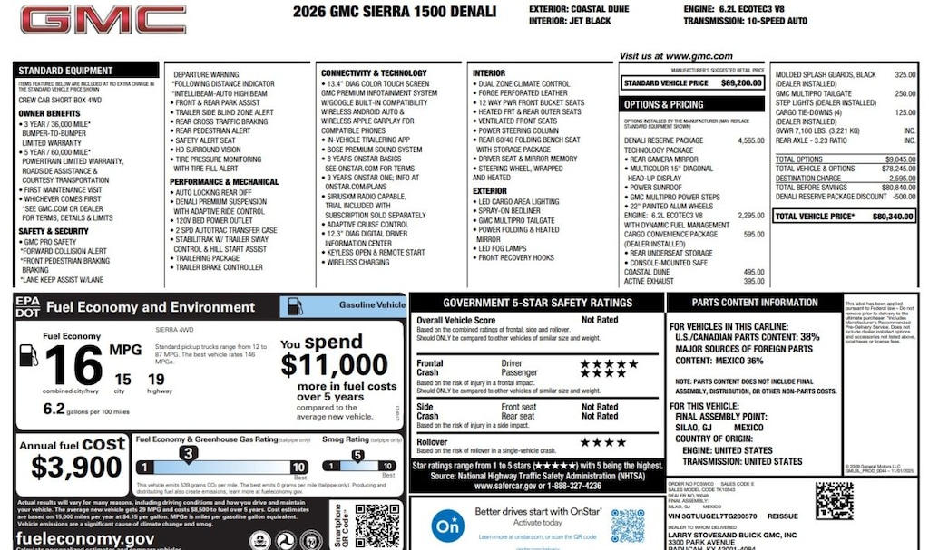 2026 GMC Sierra 1500 Denali Reserve 4x4 Truck Crew Cab V8 DI OHV GAS