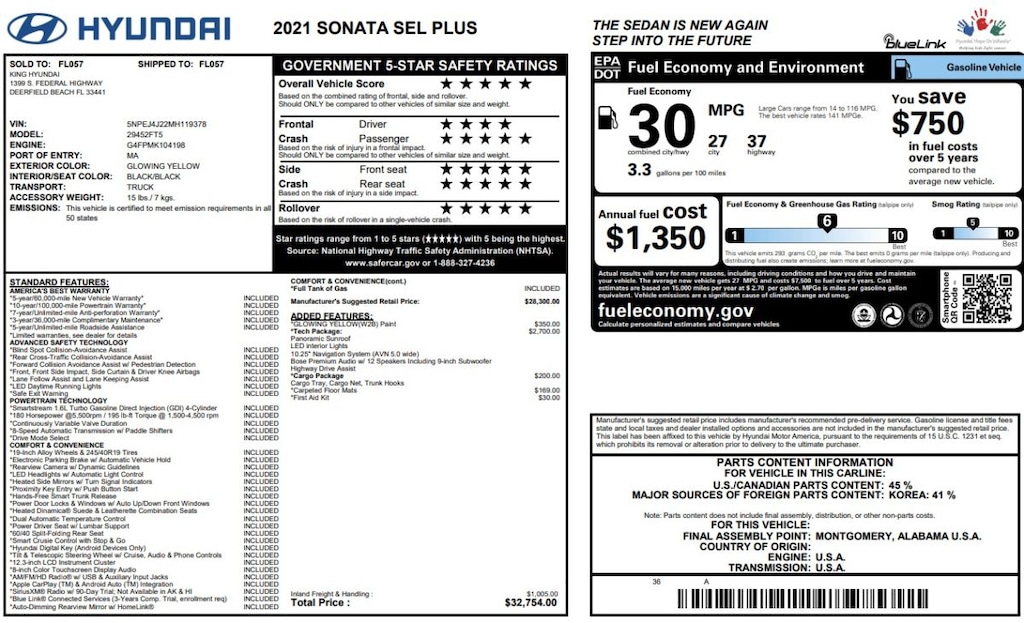 2021 Hyundai Sonata SEL Plus Sedan I-4 DI DOHC T/C