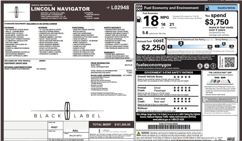 2020 Lincoln Navigator L Black Label 4x4 SUV V6 Ecoboost