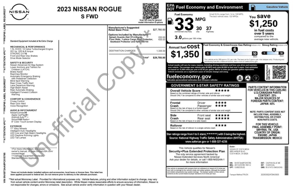 2023 Nissan Rogue S SUV I-3 DI DOHC T/C